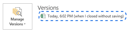 En Excel 2010 y 2013 tiene la opción de restaurar versiones anteriores de documentos. Esto es útil si cometió un error y no puede deshacerlo, o si sus datos se sobrescriben.